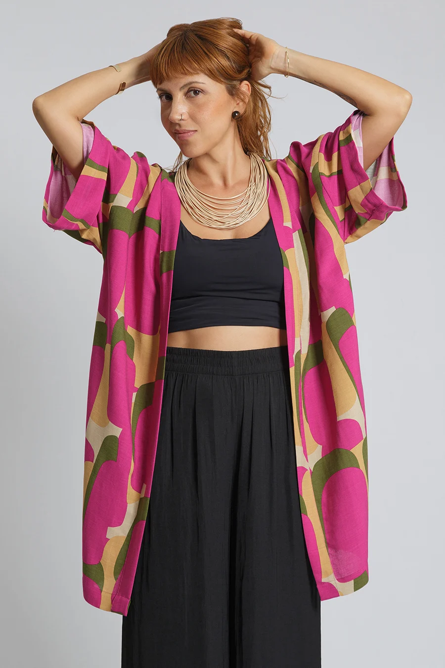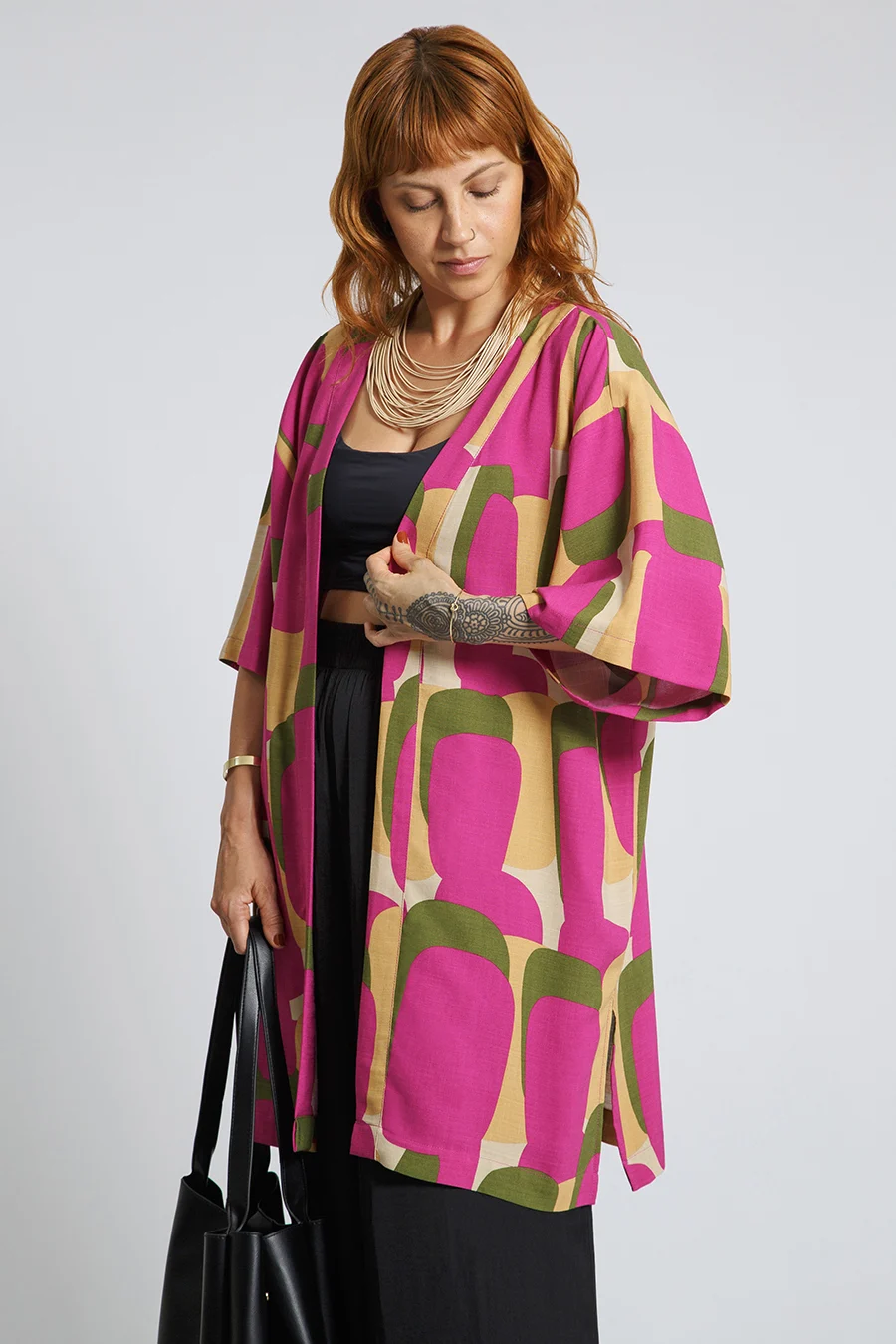 Os Kimonos Fashion Clue possuem corte reto e um molde amplo.