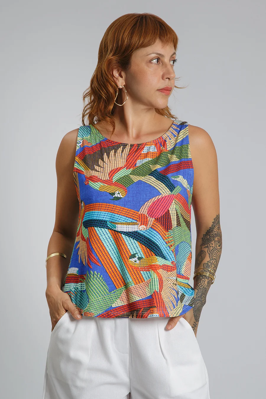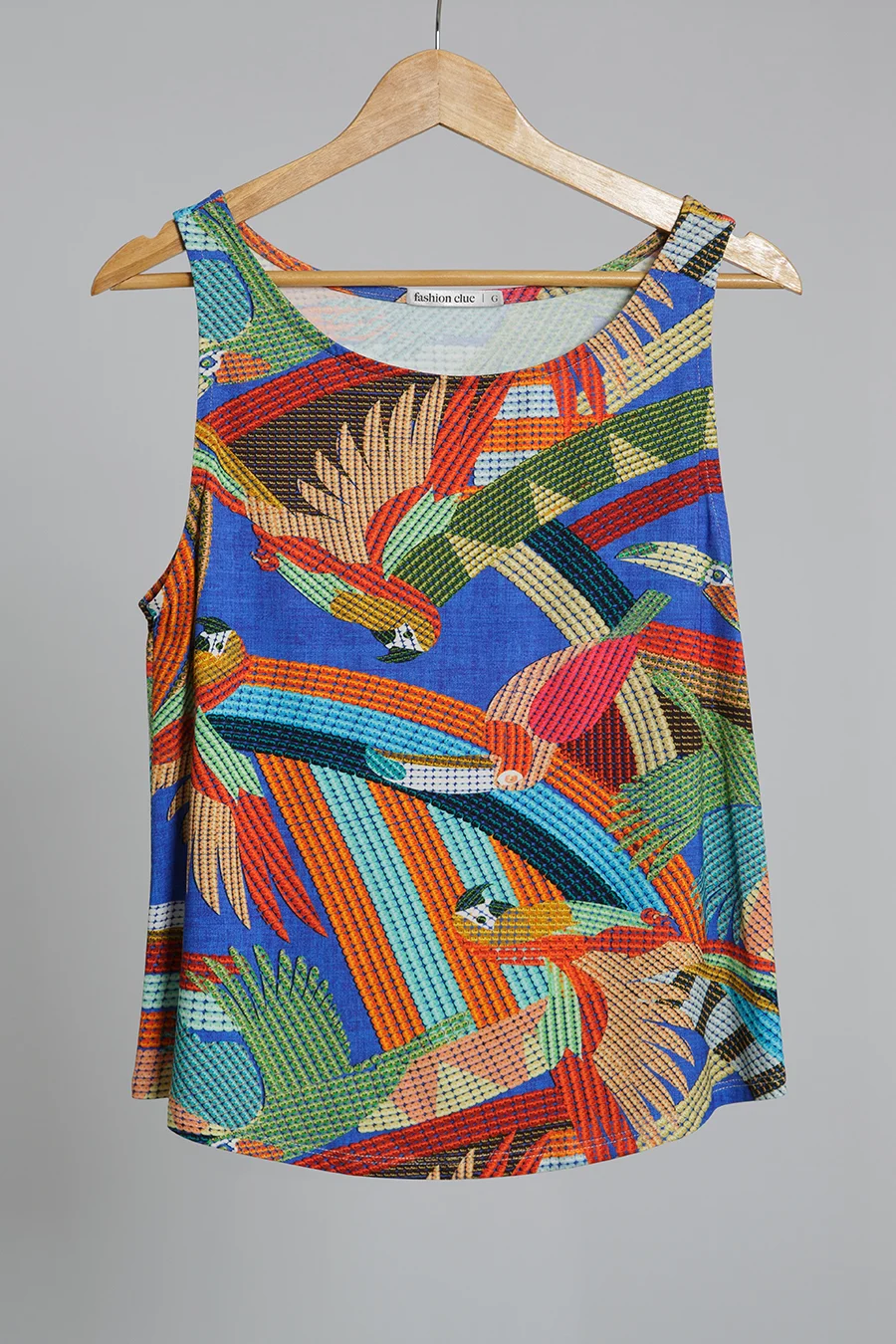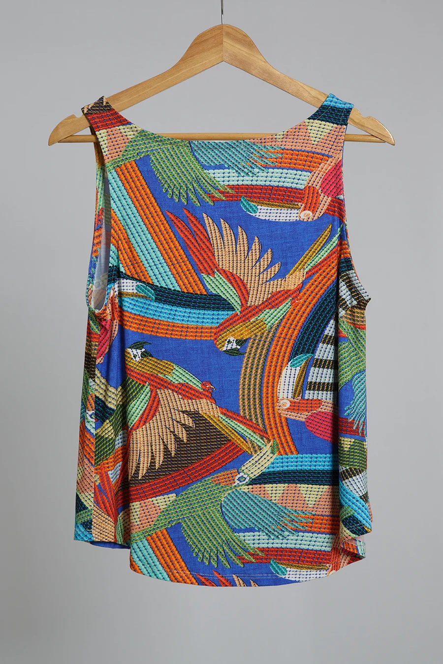Confeccionada em Viscolycra, um tecido que garante conforto e suavidade ao toque. Com decote redondo e alças médias, esta peça é coringa em qualquer guarda-roupas. Por ter um caimento mais soltinho, o tamanho G veste do 40 ao 44.